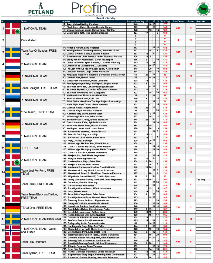 TOP DOG with 171 points – an average of 15,5 points – was Jens Jørgensen with Lucky Labradors Strong Gold Miki.