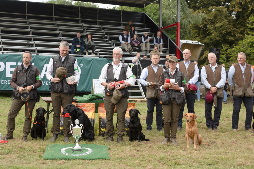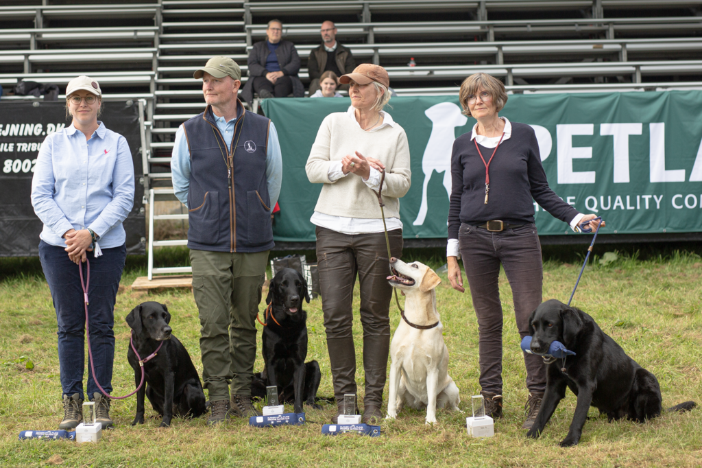 In the front are the winners of PNC2025, Team Jylland, from the left Filip Stentoft with Kela, Jonas Mikkelsen with Ashhill Gundogs Irish Delta, Flemming Nøhr Christensen with Sagnlandets Glory Zippo and Henriette Schausen with Batmoors’ Premier Burnley.
